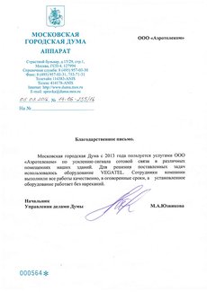 Благодарственное письмо от Московской городской Думы